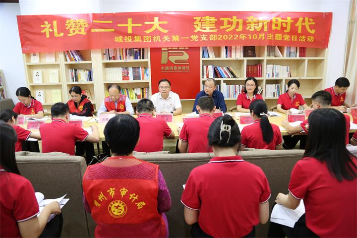 为深入学习贯彻党的二十大精神,10月31日,城投集团机关第一党支部在市人才公寓开展“礼赞二十大建功新时代”10月主题党日活动。集团党委书记、董事长黄俊,党委副书记、工会主席梁辉露,党委委员、纪委书记吴泽莲以普通党员身份参加活动。市审计局党组成员、经责分局局长黄健斌率市审计局赴城投集团审计组成员参与活动。支部书记汤彩燕主持会议。支部全体党员参加活动。