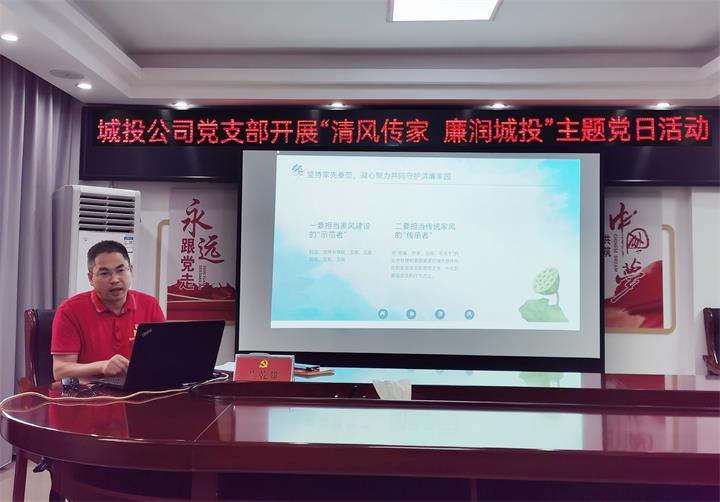 为进一步弘扬家风家训文化,厚植廉洁家风理念,以良好家风助推“清廉城投”建设向纵深发展。8月25日,贺州城投公司党支部书记、董事长兰乾雄主持开展“清风传家 廉润城投”主题党日活动。