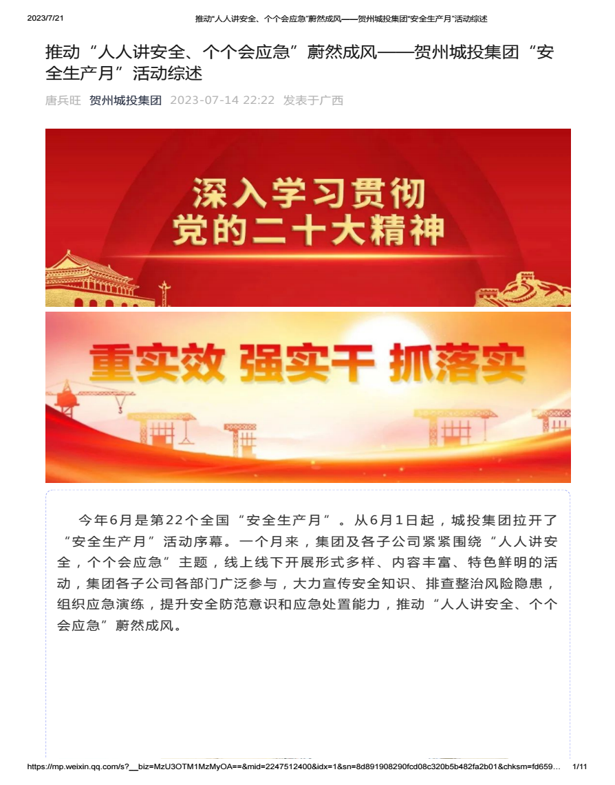 推动“人人讲安全、个个会应急”蔚然成风——贺州城投集团“安全生产月”活动综述2023-07-12